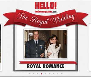 First up is Hello Magazine’s offering. As can be expected, this comprises a series of photographs of the couple, behind-the-scenes gossip and the promise of the best photographs of the day itself.